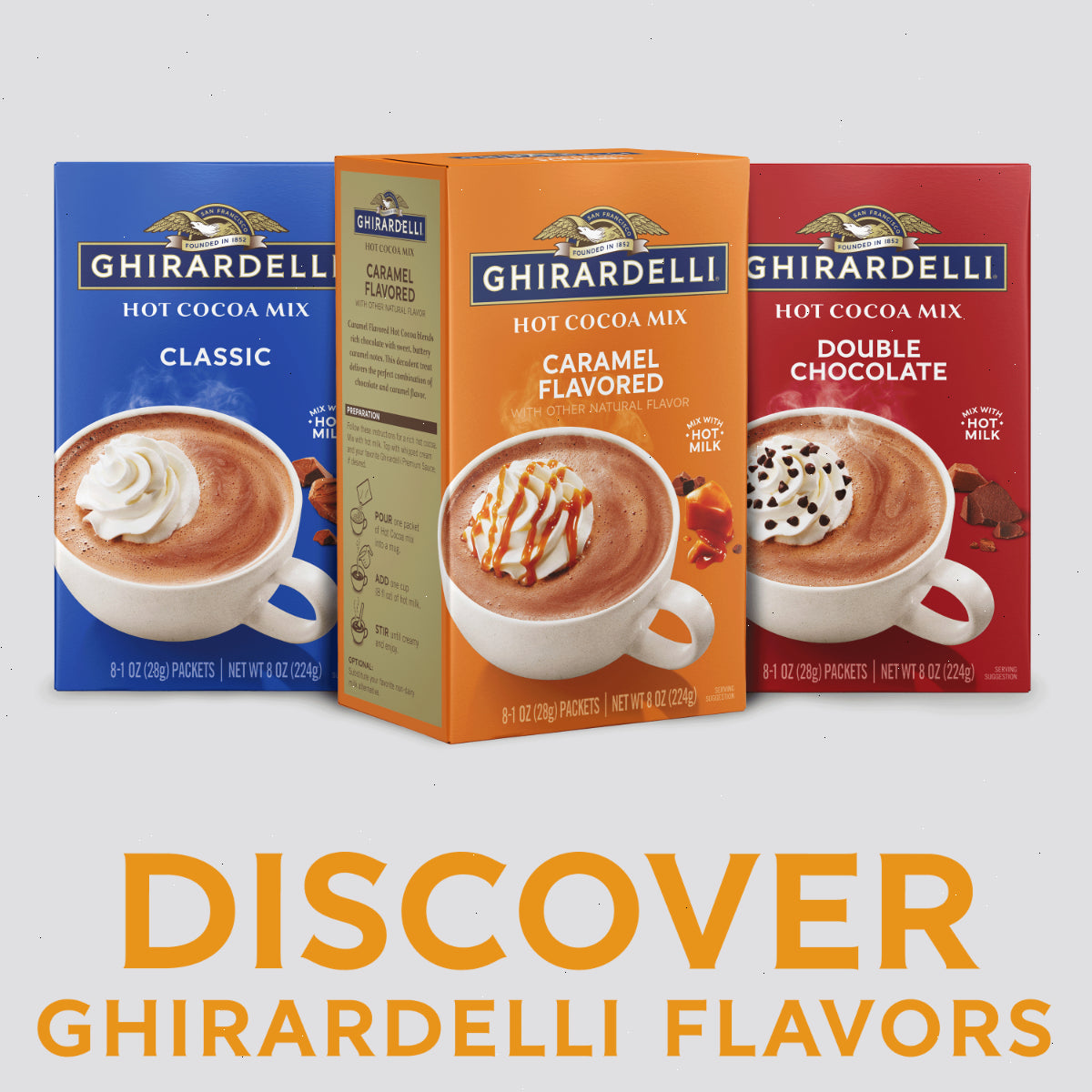 Enjoy GHIRARDELLI Caramel Flavored Hot Cocoa Mix, a delightful treat for cocoa lovers. This mix blends rich chocolate with sweet, buttery caramel notes. Perfect for cozying up with a warm mug any time of the year, it's an ideal way to elevate your daily routine. Use this mix to create indulgent hot cocoa or enhance your favorite desserts. GHIRARDELLI products are crafted with premium ingredients. GHIRARDELLI Makes Life A Bite Better.