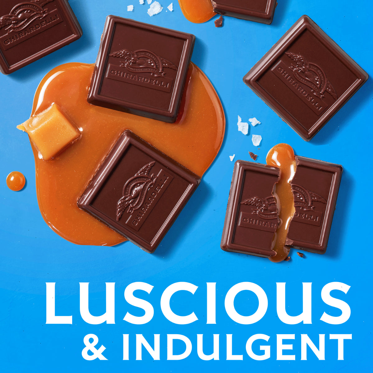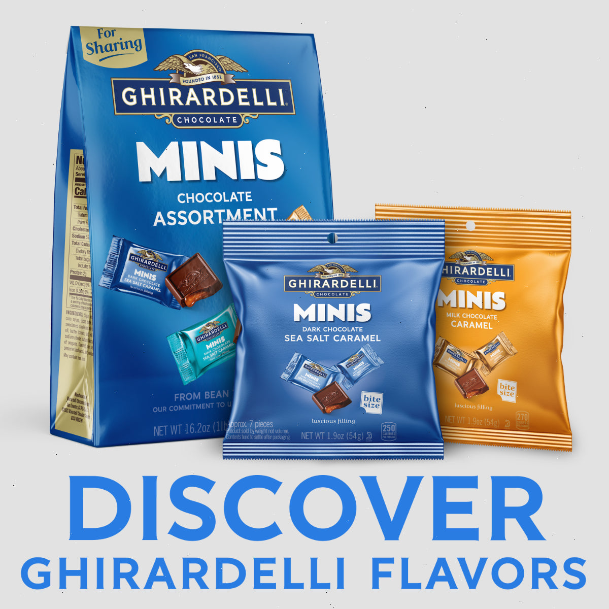 Experience our signature luscious caramel with a touch of sea salt in the ideal bite-sized chocolate. Perfectly balanced for a delicious treat anytime, these dark chocolate minis add a sweet touch to your day for something special. Share a perfectly sized afternoon treat with a loved one. Luscious caramel fills the slow-melting dark chocolate with a touch of sea salt for pure bliss in every mini. Premium ingredients, including high quality cocoa beans, are part of the GHIRARDELLI difference: a commitment to ultimate quality from Bean to Bar. GHIRARDELLI Makes Life a Bite Better. In addition to dark chocolate sea salt caramel, GHIRARDELLI chocolate minis are available in milk chocolate caramel and milk chocolate sea salt caramel.