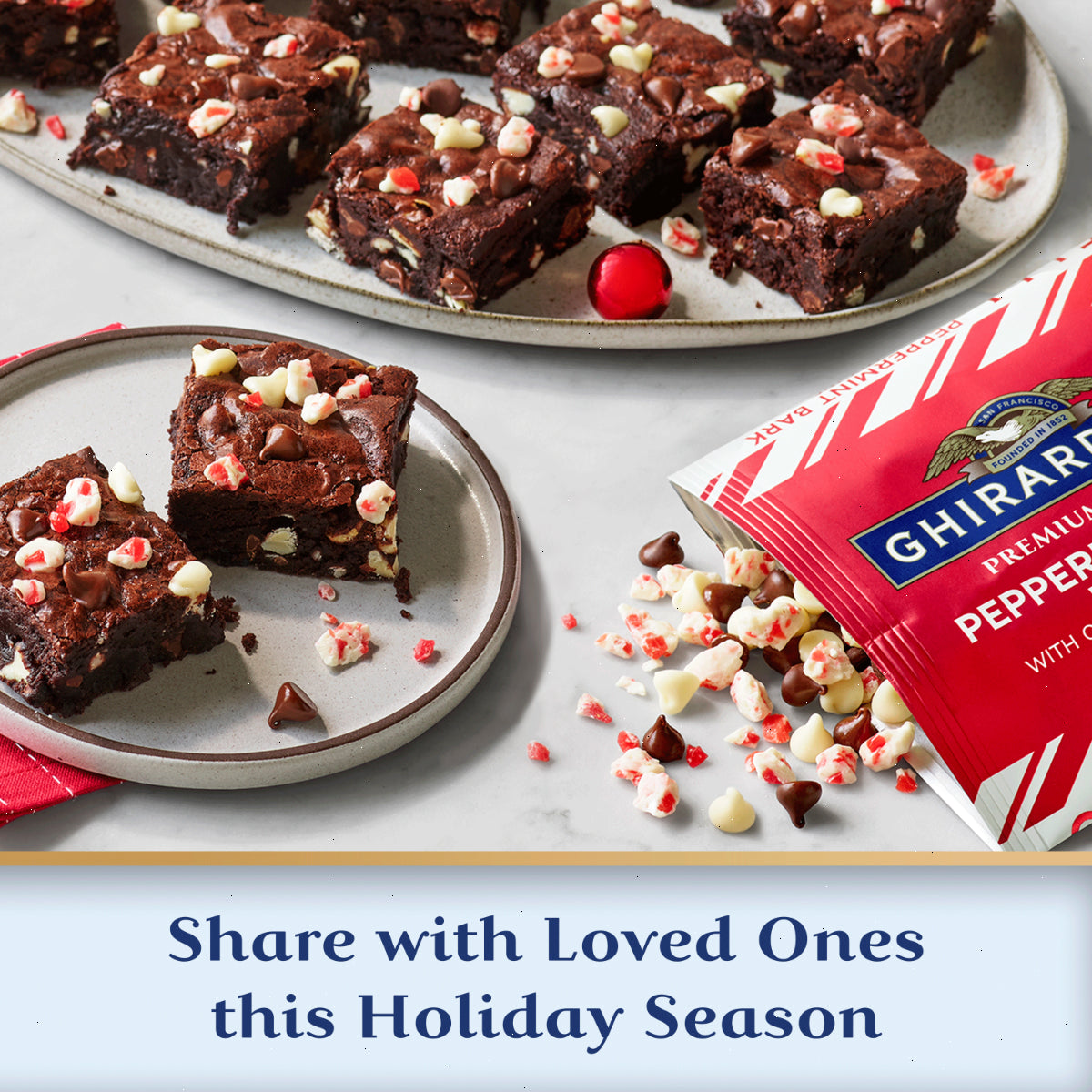 Make baking a bite better with Ghirardelli Premium Baking Peppermint Bark Mix-Ins. Ghirardelli baking peppermint bark mix-ins are perfect for any holiday baking or snacking recipe with its indulgent blend of flavors and textures. These mix-ins feature semi-sweet chocolate chips, classic white chips and peppermint bark pieces. Stir these peppermint bark mix- ins into your cookies, brownies and any other treats to maximize your holiday experience. Elevate your baking from great to extraordinary with Ghirardelli Peppermint Bark Mix-Ins.