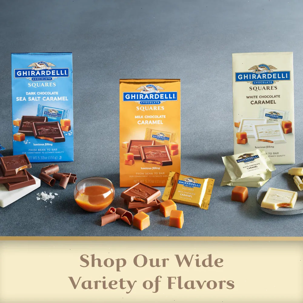 Enjoy the ultimate treat with Ghirardelli's White Chocolate Caramel SQUARES! This case of six (6) 5 oz. bags contains individually-wrapped, delicious squares of luscious caramel surrounded by GHIRARDELLI's rich, decadent white chocolate. Perfectly sized for gifting, entertaining, or for personal enjoyment, these white chocolate caramel squares are crafted with high-quality ingredients and certified kosher. Indulge in these delicious treats with friends and family or keep them all to yourself – you won't be able to resist the tempting taste of white chocolate and caramel!